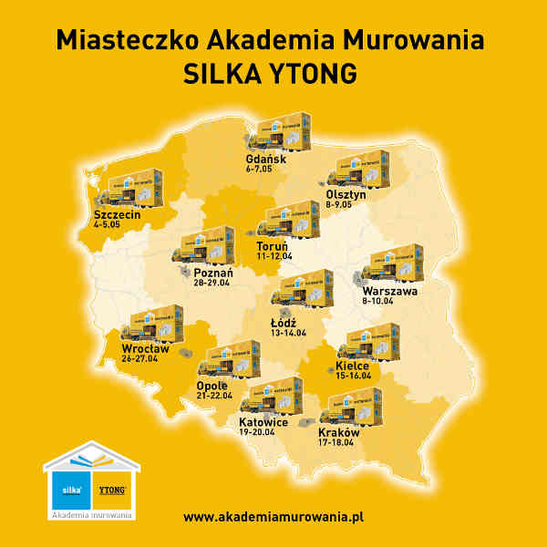Więcej informacji o akcji Miasteczko Akademia Murowania SILKA YTONG na www.akademiamurowania.pl, a już 17-18 kwietnia miasteczko zagości w Krakowie, w Parku Handlowym Zakopianka.