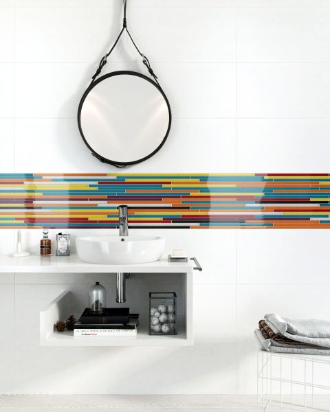 Ozdobne pasy i mozaiki w kontrastowych kolorach pięknie podkreślają styl łazienki, czy kuchennej ściany. Różnokolorowe mozaiki, listwy i inserta spodobają się tym, którzy przy urządzaniu domu stawiają na oryginalne i spójne efekty.