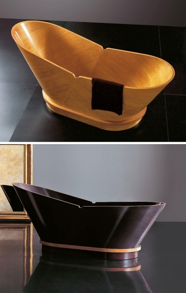 Choć kiedyś drewno było podstawowym surowcem, z którego budowano balie, wiadra i wszelkie pojemniki na wodę, dziś głównymi materiałami wykorzystywanymi w produkcji wyposażenia łazienkowego stał się akryl i metal. Tymczasem wanna Calypso, zaprojektowana przez włoskiego designera Alessandro Lenarda, to ekskluzywna i niepowtarzalna wanna wolnostojąca, wykonana z wysokiej jakości wodoodpornej sklejki, jaką wykorzystuje się do budowy doków i łodzi, wykończonej drewnem wiśniowym lub wenge.