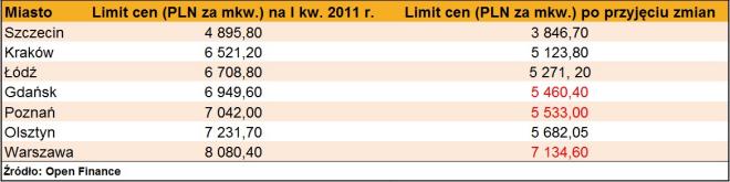 Rzeczywiście, w Poznaniu i Gdańsku utrzymają się najwyższe wskaźniki, zaraz po Warszawie i Olsztynie. Oznacza to, że w tych miastach zmiany będą odczuwalne w najmniejszym stopniu. Dzisiaj z dopłatą do kredytu można tam kupić od 50 do 80 proc. mieszkań. Po wejściu w życie nowych zasad korzystania z programu, jego wymagania będzie spełniało co trzecie mieszkanie na rynku pierwotnym. Największa rewolucja czeka mieszkańców Szczecina, gdzie po zmianach limit ceny mkw. mieszkania spadnie do 3 846,70 zł.